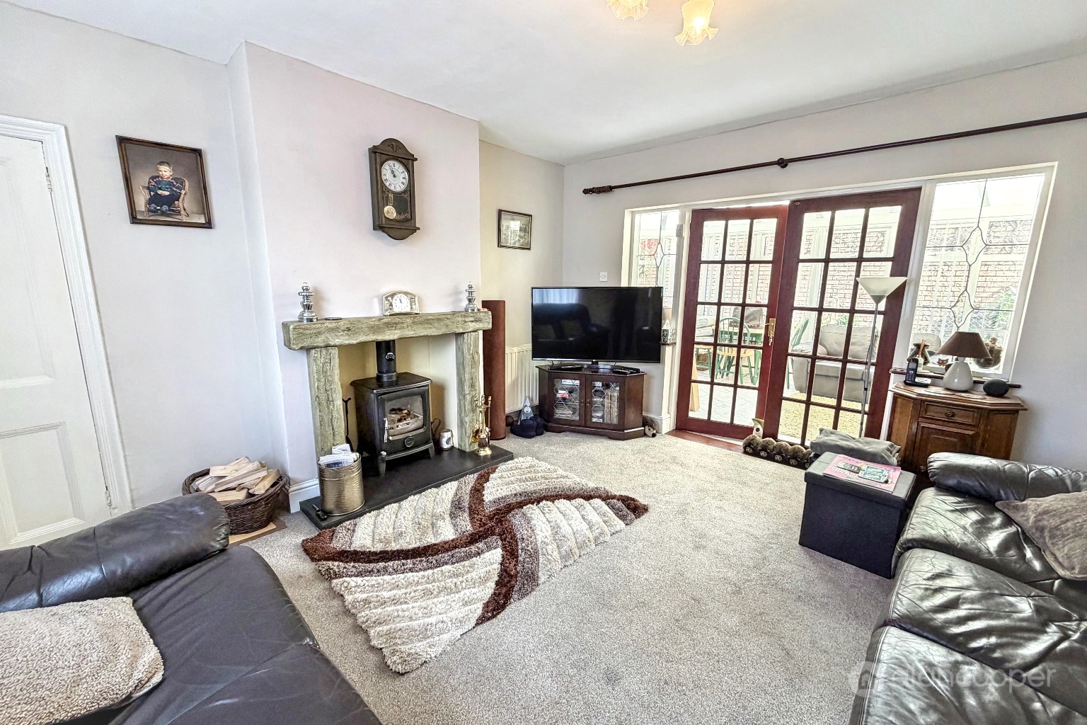 The ground floor accommodation begins with a welcoming side entrance hall. The front lounge provides a comfortable space, which then opens into a further sitting room, both featuring windows to the front aspect. The main living room is a focal point, boasting a feature fireplace housing a multi-fuel room heater, a side window, and glazed doors that lead directly into the UPVC double glazed conservatory. This bright conservatory offers picture windows and doors opening out to the garden, creating a seamless connection between indoor and outdoor living.
