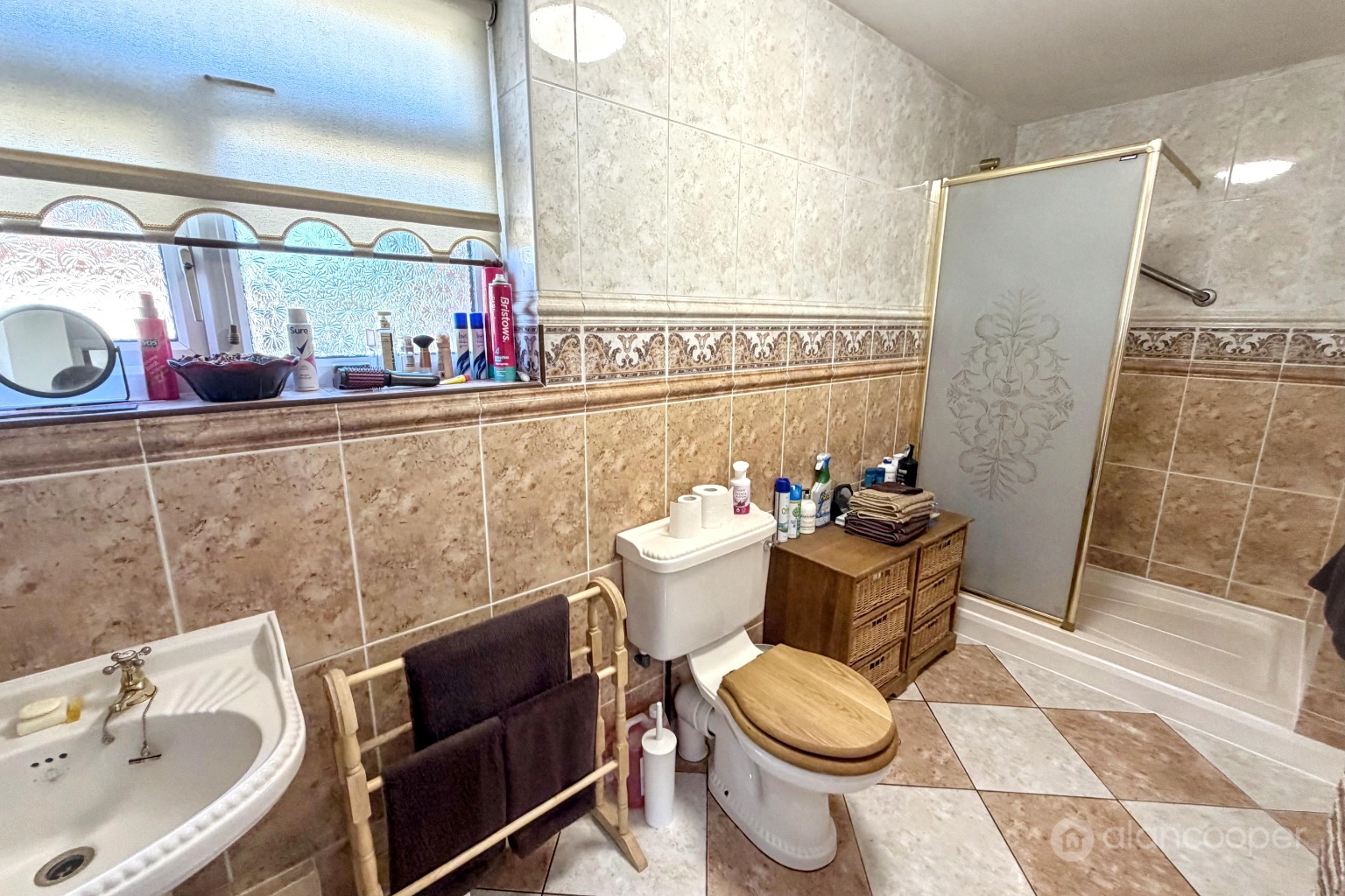 Shower RoomBeing fully tiled to the walls and having a white suite comprising a shower cubicle, pedestal wash hand basin and low level WC. Central heating radiator and sealed unit double glazed window.