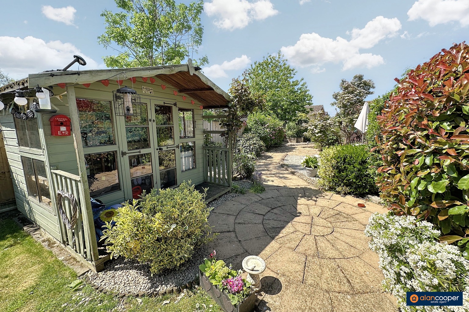 The rear garden is a true highlight of the property and has been thoughtfully designed to offer a mix of practicality and beauty. It boasts a patio area, ideal for outdoor dining or relaxing, a lawned area, a sweeping pathway, loose stones, and inset planting as well as floral borders. At the rear of the garden, there is an additional area of lawn, which further enhances the versatility of the outdoor space.