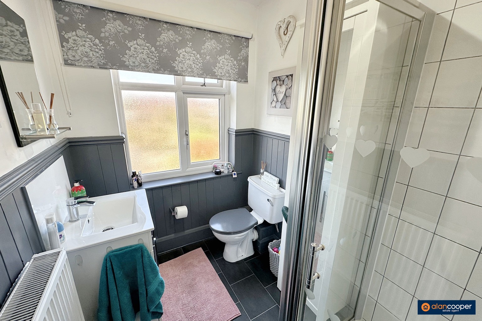Shower RoomBeing half panelled to the walls and having a white suite comprising a shower cubicle, wash hand basin with cupboard below and low-level WC. Central heating radiator and UPVC sealed unit double glazed window.