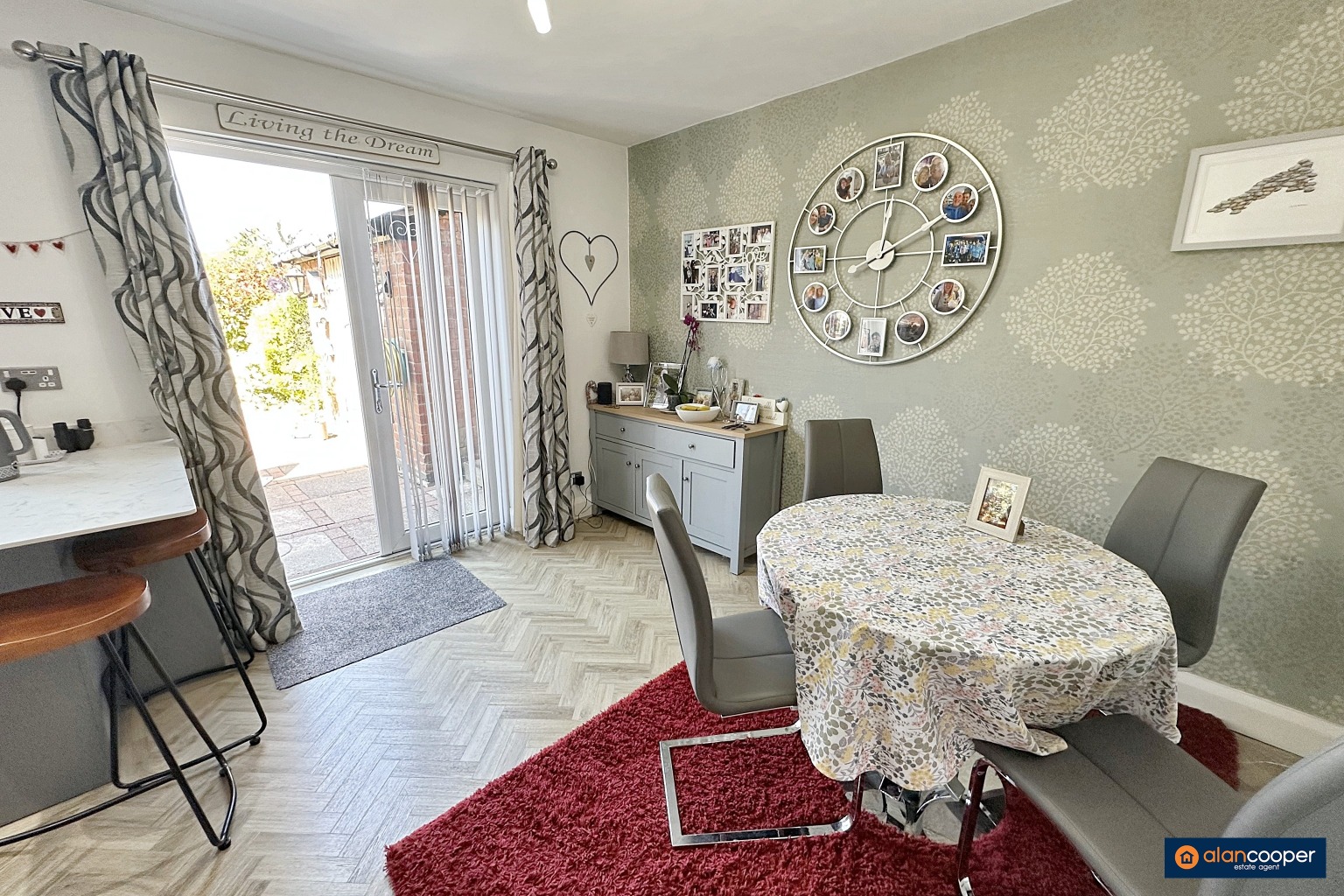The open plan dining kitchen is a highlight of the home, offering a practical and stylish layout. The kitchen is equipped with a built-in oven and hob, making meal preparation a breeze. The dining area benefits from glazed double doors that lead directly to the rear garden, seamlessly connecting indoor and outdoor living spaces.