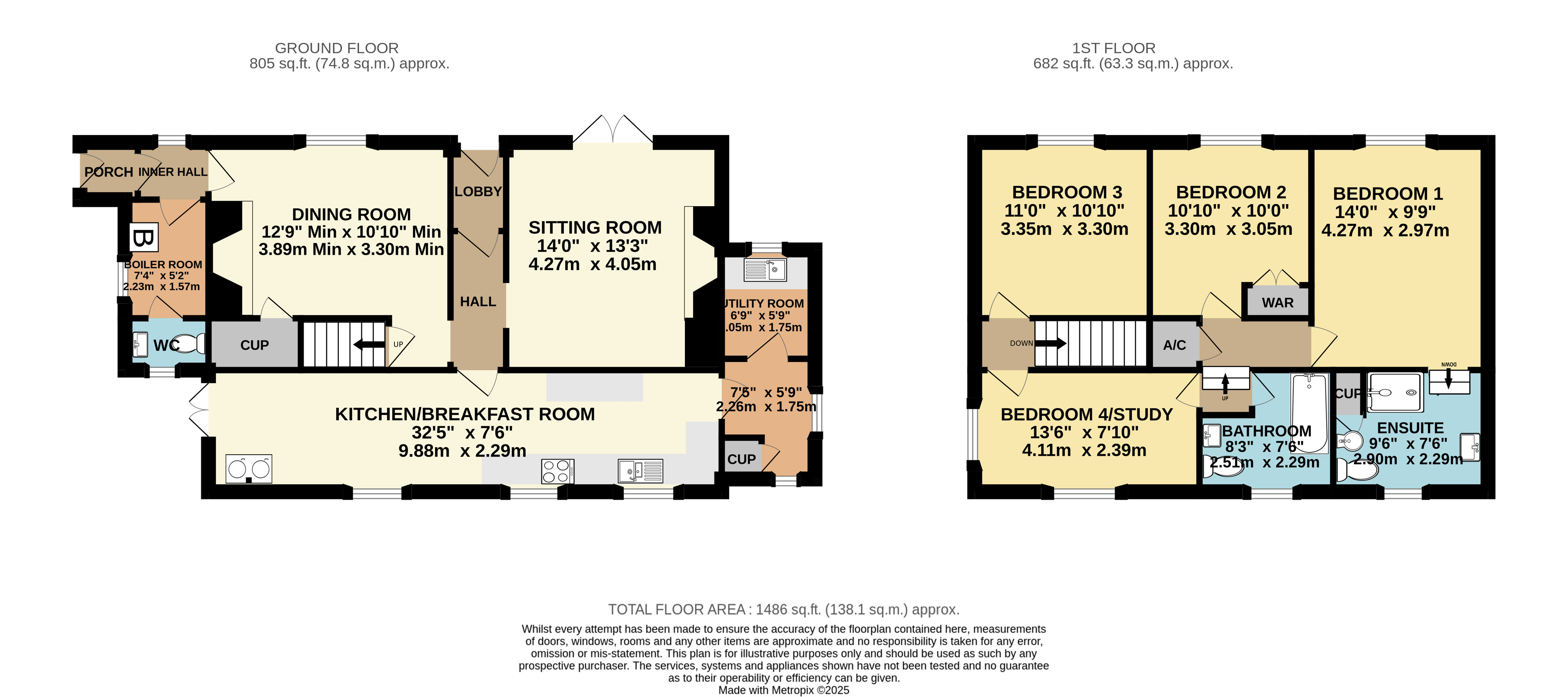 Bedroom 3 11' x 10'8" (3.35m x 3.25m).