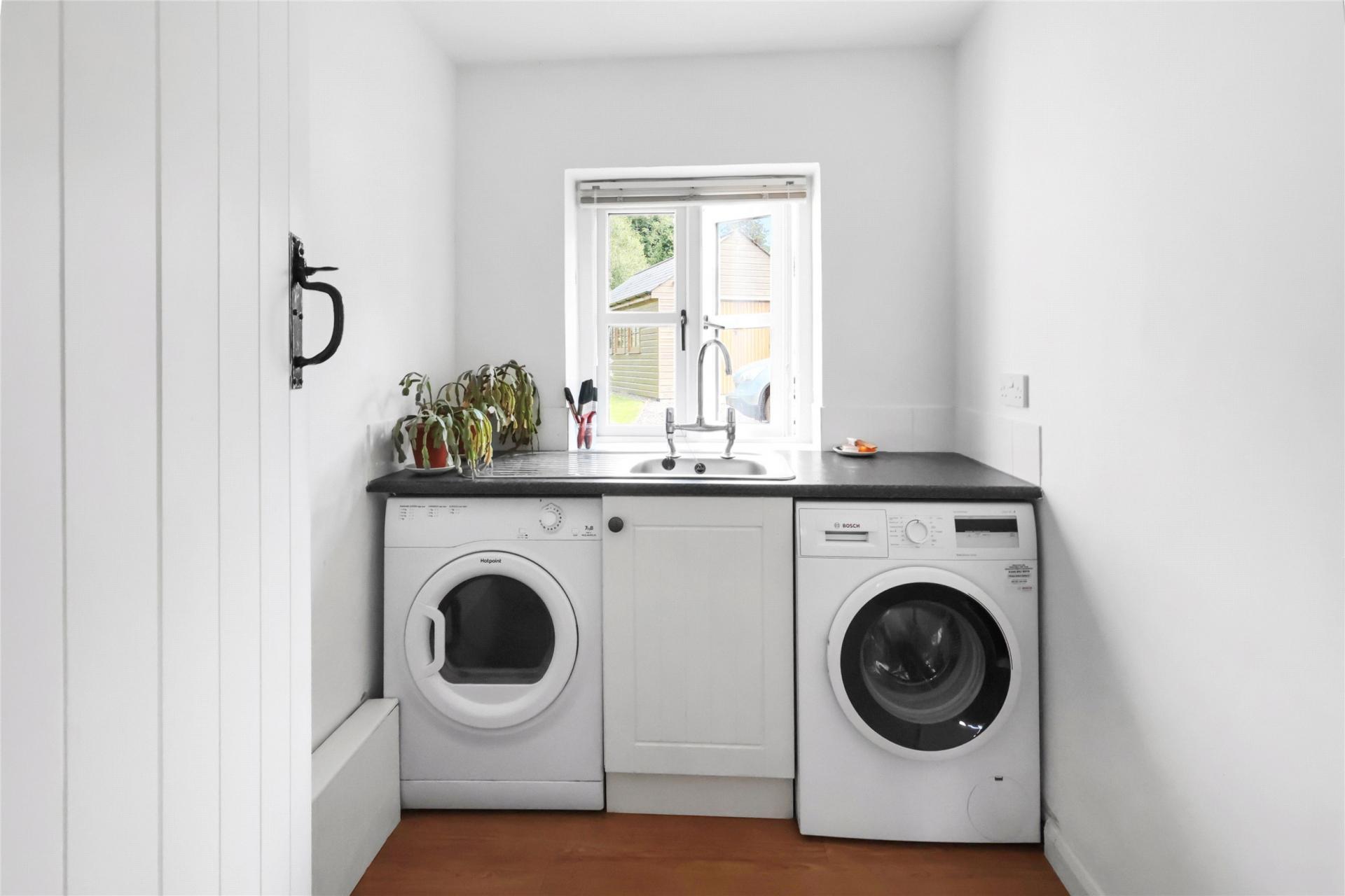 The double aspect kitchen/breakfast room is well-equipped with bespoke Robert Charles kitchen to include a range of base units with quartz work tops, one and a half bowl ceramic single drainer sink unit with mixer tap, integrated appliances to include Neff induction hob, oven and dishwasher, extractor hood, fridge/freezer, oak topped base unit with cupboards under, oil fired Rayburn in the breakfast area, tiled flooring and double doors to outside. A separate utility and store room is fitted with a roll edge work top, stainless steel single drainer sink unit with mixer tap, plumbing for washing machine, space for tumble dryer and broom cupboard.