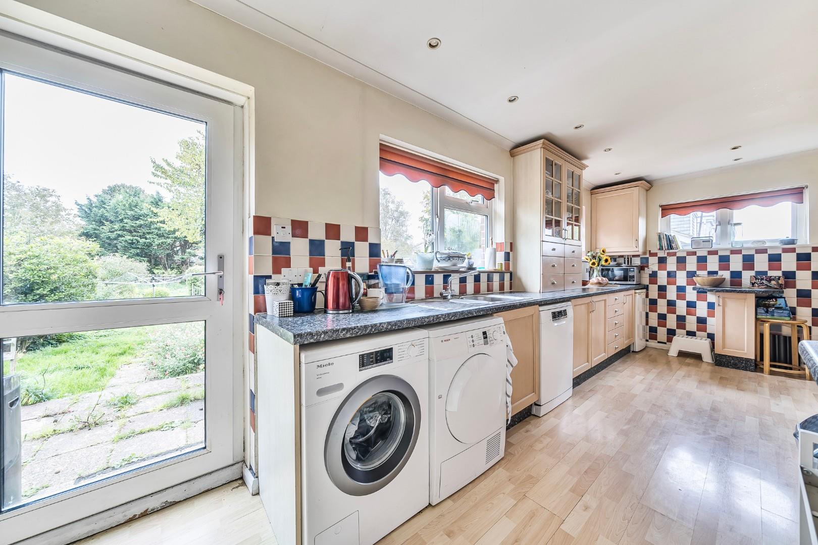 The expansive plot offers a generous rear garden, perfect for outdoor activities, gardening, or simply enjoying the sunshine. Additionally, the property includes parking for several vehicles, enhancing its practicality for family living.