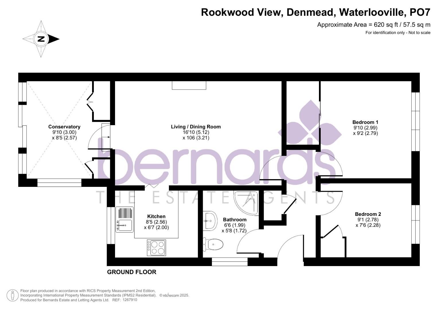 Welcome to Rookwood View, a delightful retirement flat located in the charming village of Denmead, Waterlooville. This well-appointed property offers a comfortable living space of 620 square feet, perfect for those seeking a peaceful and convenient lifestyle.