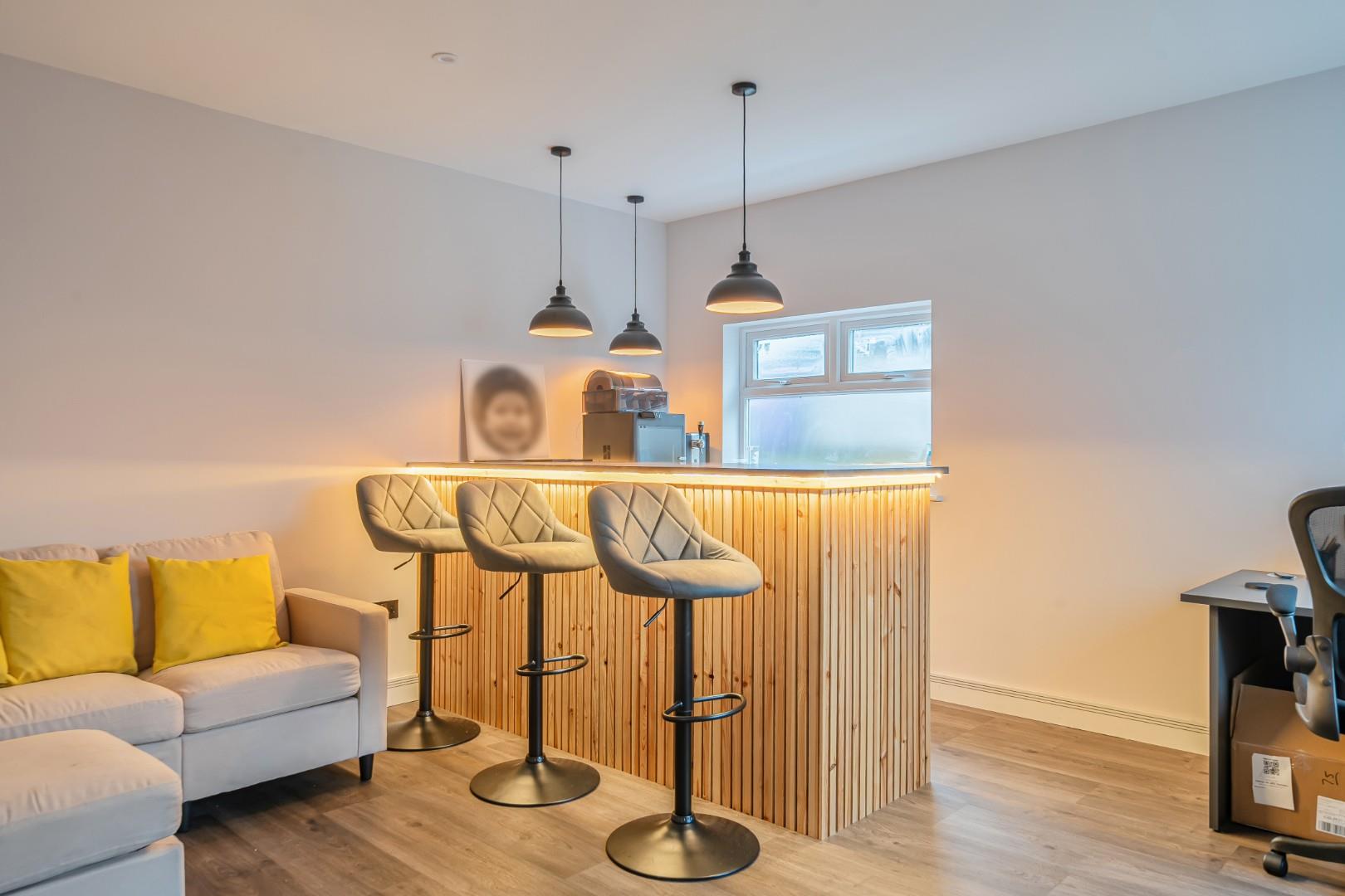 The property boasts a well-maintained bathroom, ensuring convenience for all residents. Outside, you will find a lovely garden complete with an outbuilding that can serve as a bar or additional storage space, perfect for hosting gatherings or enjoying quiet evenings outdoors.