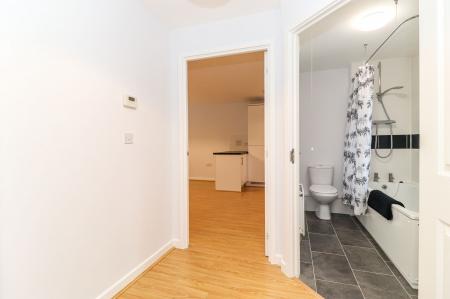 Internally, the entrance hall boasts window to side, two storage cupboards, as well as doors to all rooms. The generous living/dining area benefits from plenty of natural light with double Juliette doors and ample windows. The kitchen area is well-appointed with a range of built-in appliances, providing both practicality and a sleek finish. The double bedroom is a good size, while the bathroom is neatly presented and functional.