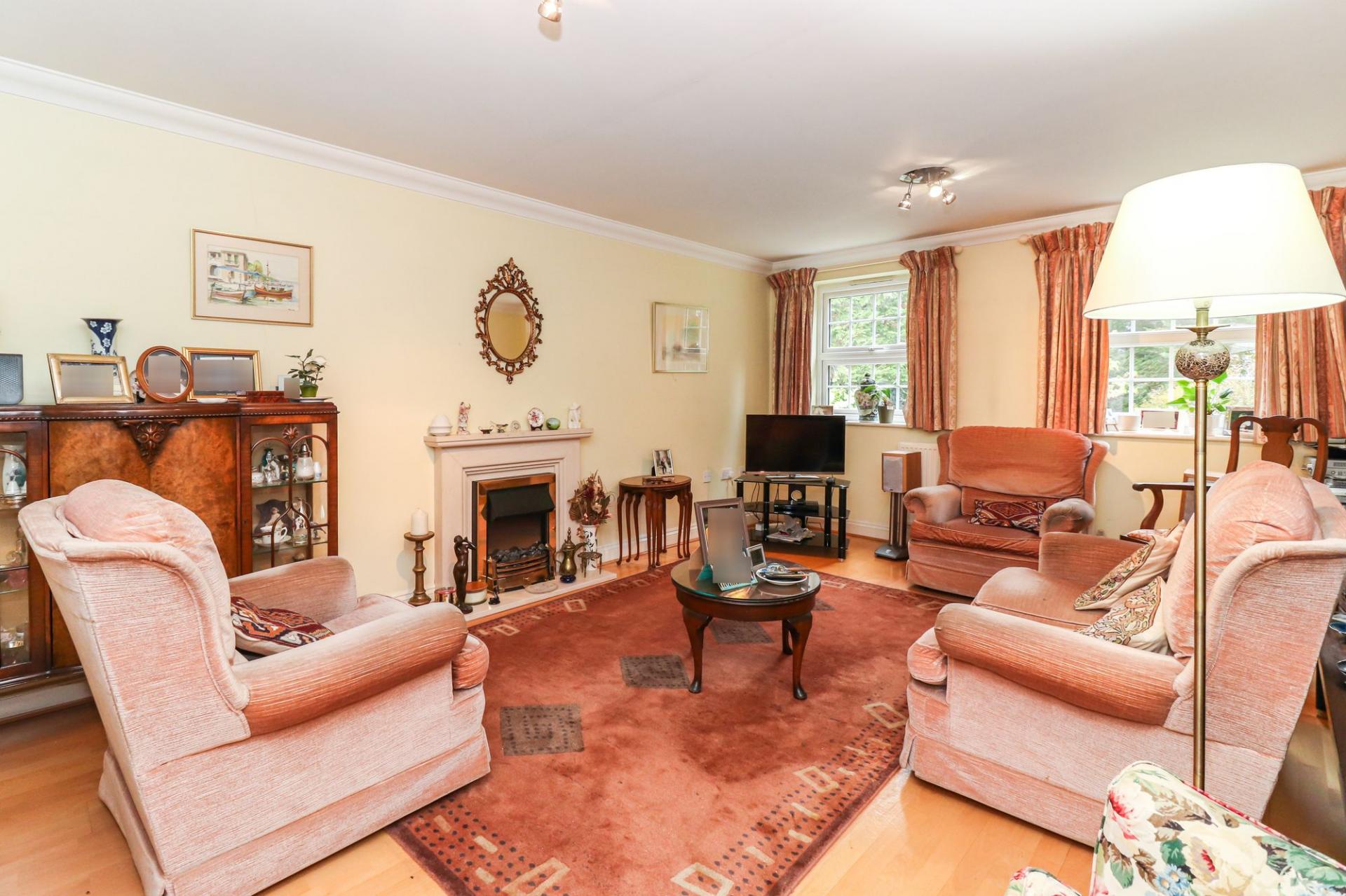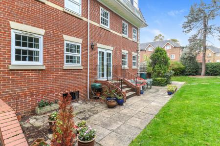 The apartment is one of the largest in the block and benefits from its own privately owned patio area with direct access to the communal gardens. The accommodation comprises a welcoming entrance lobby and hall, a bright lounge, a generous kitchen/breakfast room, two double bedrooms, a spacious bathroom, and an en suite to the master bedroom.