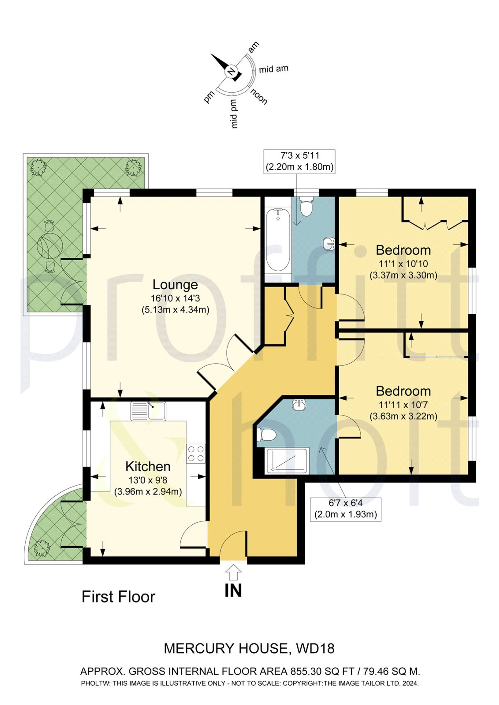 Boasting approximately 855 sq. ft., the property features a generous lounge/diner with double doors leading to a private balcony, providing a tranquil view of the communal grounds. The well-appointed kitchen/diner also offers access to a second balcony, perfect for enjoying your morning coffee.