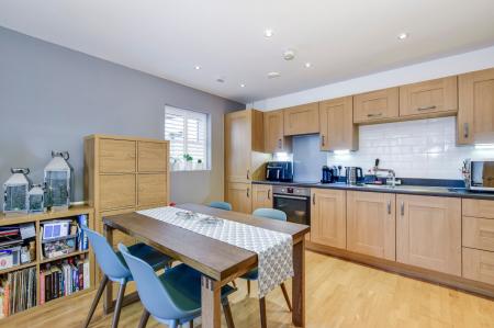 The open-plan kitchen/living room is a wonderful social space, with more than enough room for a comfortable seating area and separate dining space. The kitchen itself has been fitted in a classic shaker design and offers a number of integrated appliances. The 2 bedrooms are both good sizes, with the master bedroom benefitting from an en-suite shower room and built-in wardrobes.