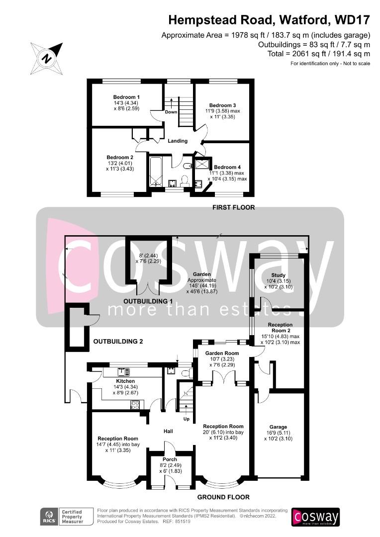 The house is situated approximately 1.3 miles from Watford Junction Station providing fast trains into London Euston (in 19 minutes). There are a selection of good secondary schools locally including Watford Boys and Girls Grammar Schools, and Parmiters. There is easy access to leisure facilities, the Green Flag award winning Cassiobury Park, and Watford town centre with its excellent facilities including the Atria Shopping Centre, imax cinema, and several theatres. There are also some lovely walks nearby such as Cheslyn Gardens and Whippendell Woods. SOLE AGENT.