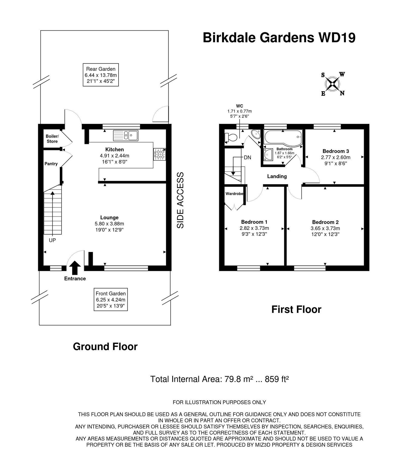 - Front and rear garden