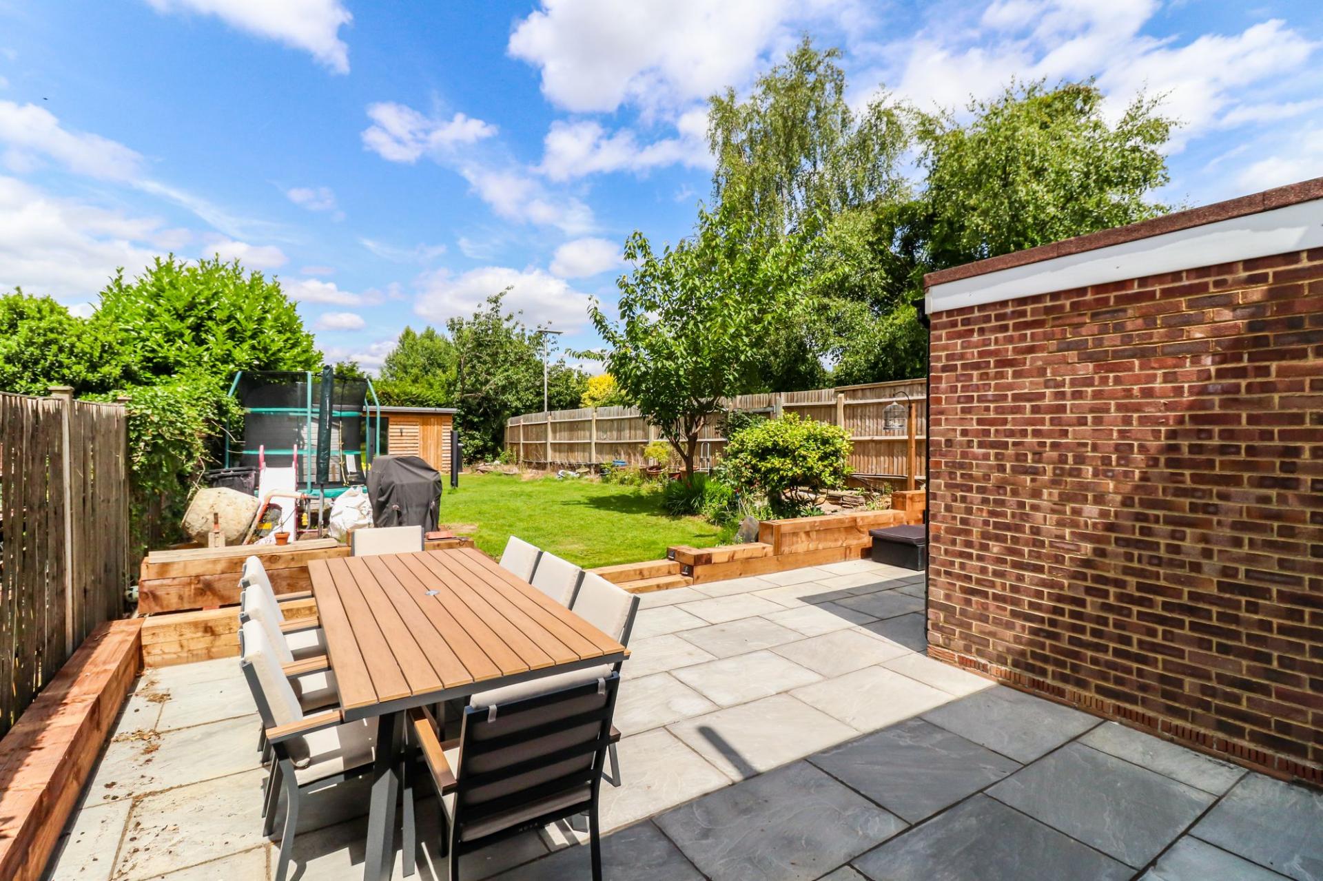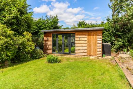 Outside, the private rear garden is mainly laid to lawn and includes a newly laid patio—perfect for summer dining. A large outbuilding at the rear provides an ideal space for a home office, gym, or studio. To the front is a spacious garden and ample parking available.