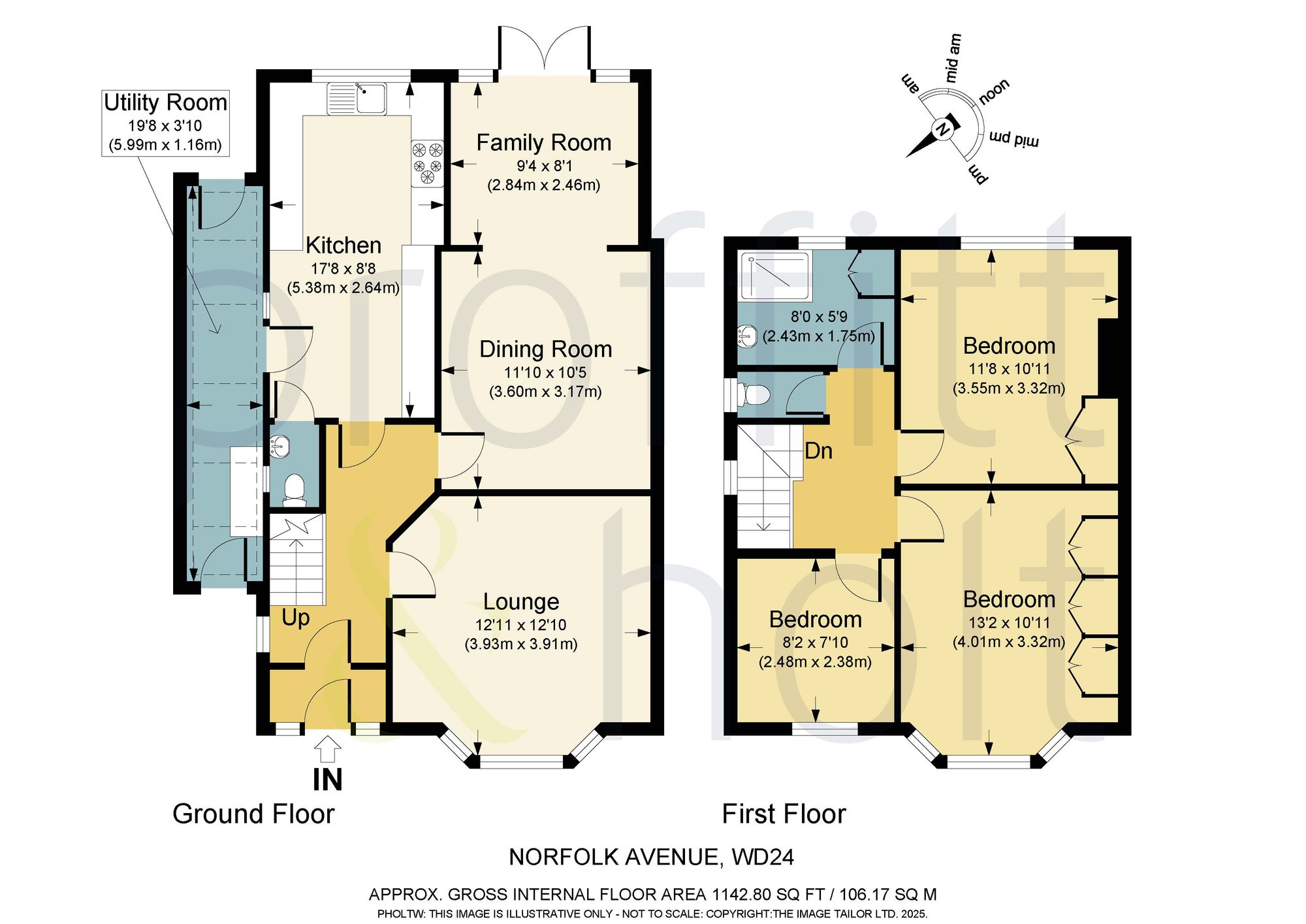 Extended three-bedroom semi-detached family home in a highly sought-after location, presented in immaculate condition and marketed by Proffitt & Holt. The property is approached via a front porch leading into a welcoming entrance hall. The ground floor features a spacious lounge and dining room, with a sitting area just off the dining space that provides direct access to the rear garden, ideal for relaxing or entertaining. At the rear, a modern fitted kitchen provides access to the utility room running along the side of the house, offering access to both the front and rear of the property.