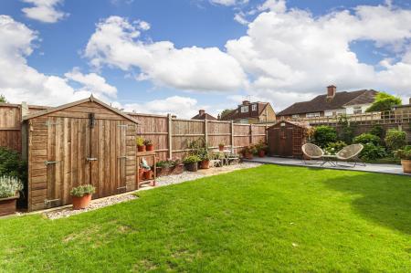 Externally, the property benefits from a large front driveway and garden, providing ample off-street parking. The generous rear garden, measuring approximately 19m, is partly paved for entertaining and mostly laid to lawn, offering plenty of space for children, pets, or outdoor dining.