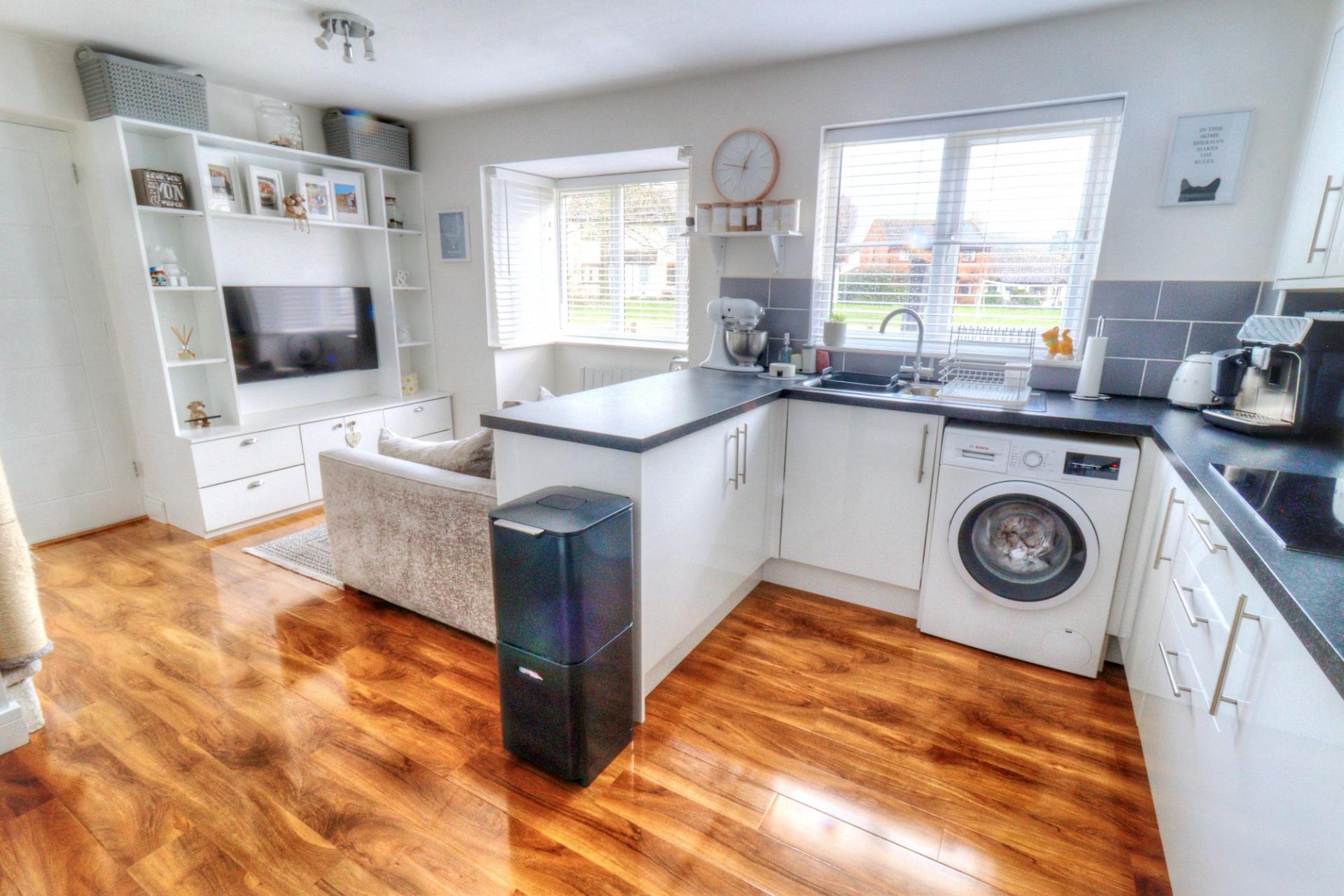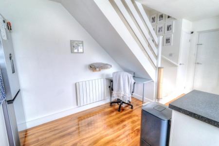 Found on the outskirts of this popular market town is this modern well presented freehold house with stylish decor and modern fitments throughout. From the entrance porch you enter into the open plan living space which consist of a lounge area with bay window overlook the garden, modern fitted kitchen with built in oven, grill, hob & hood and further space for appliances. The area under the stairs provides a useful study area should you work from home. The first floor landing leads to the double bedroom with built in wardrobe and modern fitted bathroom suite. The accommodation is complimented by double glazing and updated electric panel heaters. Outside there is an area of private garden laid to lawn that overlooks a green to front and an off street parking space. Viewing recommended.