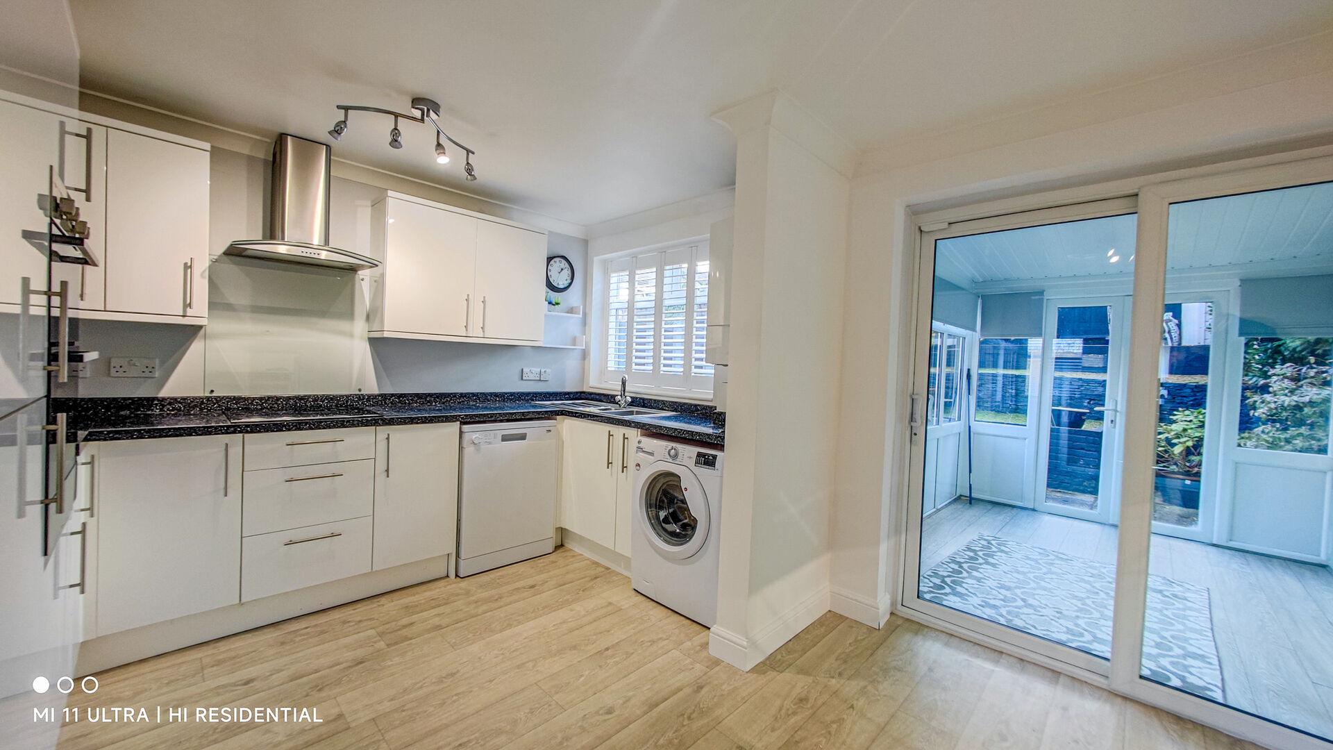 Inside, the home features a generously sized reception room, ideal for family living or entertaining guests. The modern fitted kitchen includes a dedicated dining area, providing a welcoming space for everyday meals. Upstairs, three well-proportioned bedrooms offer flexible accommodation for families or professionals, complemented by a contemporary and practical bathroom suite.