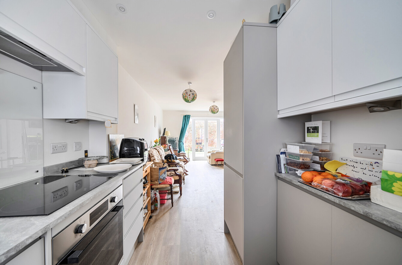 Step just off the town centre and straight into the comfort of your new home, where an inviting entrance hallway leads to a useful cloakroom before opening into a bright, open plan living area. This superb living space forms the natural heart of the property, seamlessly connecting to a contemporary kitchen complete with integrated appliances including an oven, ceramic hob, extractor hood, dishwasher, washing machine and fridge freezer. Patio doors allow natural light to pour in, drawing the eye out toward the enclosed rear garden.