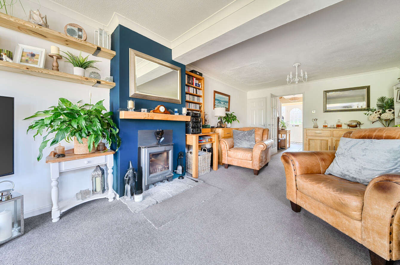The main sitting room forms the heart of the home and offers an impressive open space for day to day living, gathering with family, and entertaining. A wood burning stove creates a natural focal point, while doors opening directly onto the garden help connect the inside. The proportions of this room give it a versatile feel, allowing space for both seating and dining if required