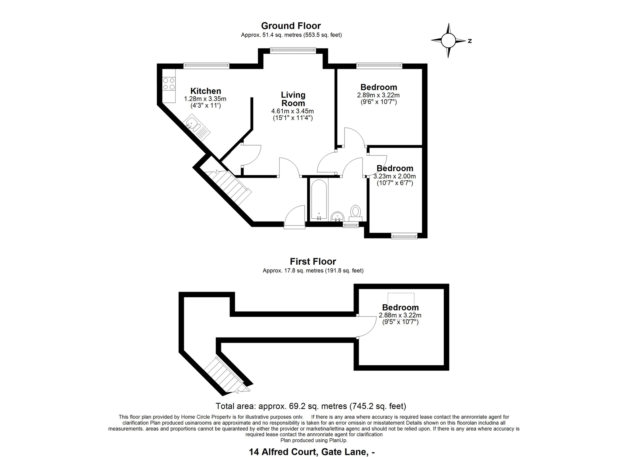 - Two first floor bedrooms and a bathroom
