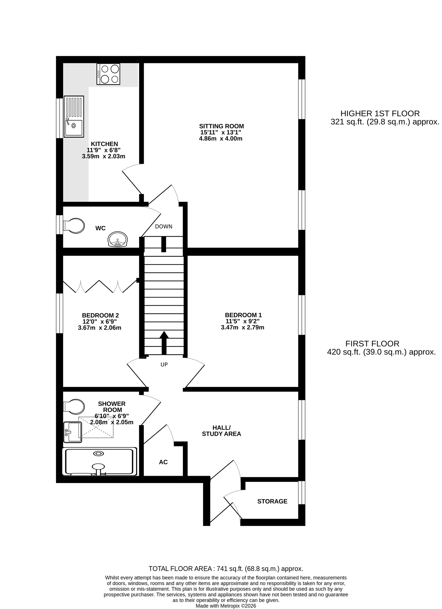 - Two bedrooms (one with fitted double wardrobe)