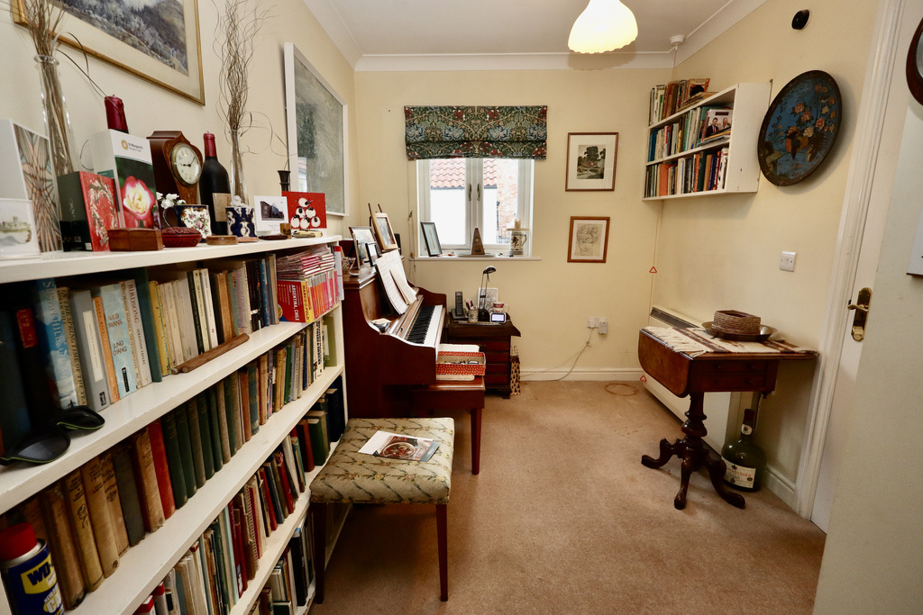 - Bright, sunny L-shaped sitting room with feature electric fire and a recessed dining area. Two windows overlook the communal courtyard.