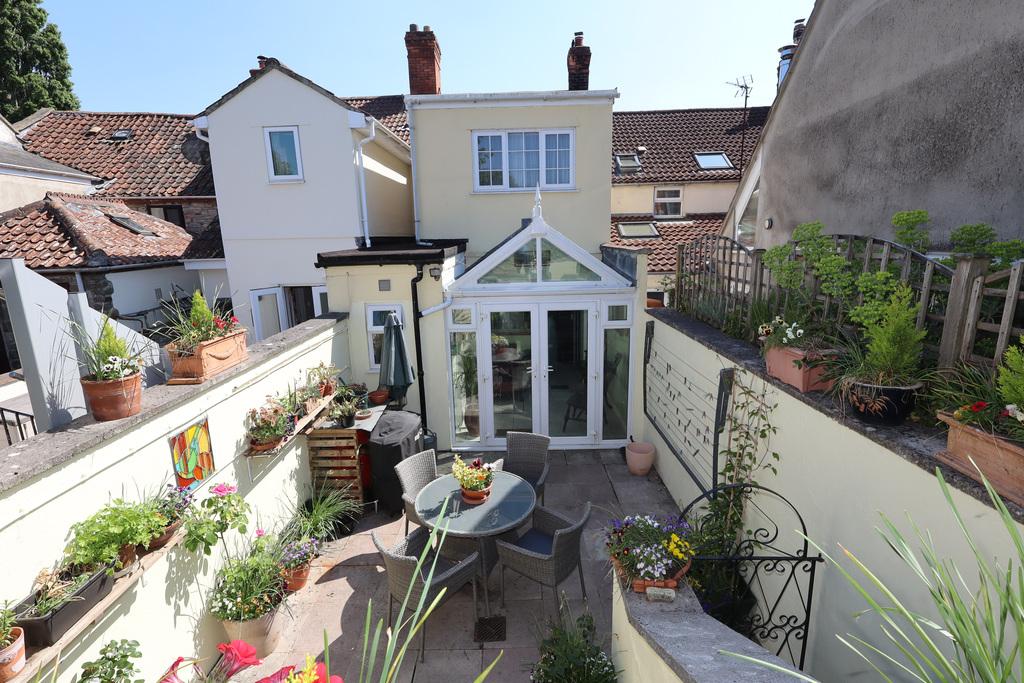 - The garden is divided by a small path into two sections, the lower part is walled and accessed from the French doors. The upper section has a cottage garden feel with a variety of plants and shrub...