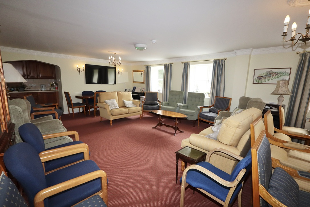 - L-shaped reception room with french doors out onto a patio with delightful communal gardens beyond