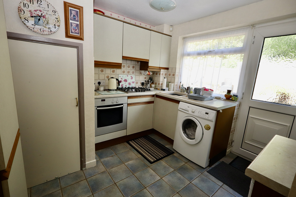 - Kitchen with understairs cupboard and door to the rear garden with a range of fitted units