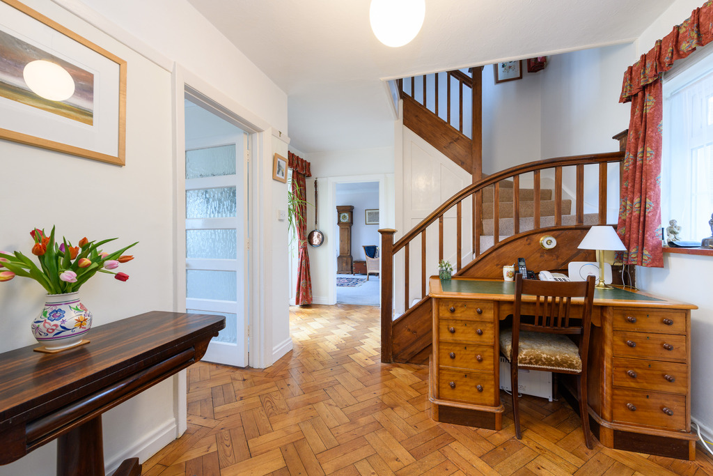 - Entrance hall with wooden parquet floor and access to the rear garden