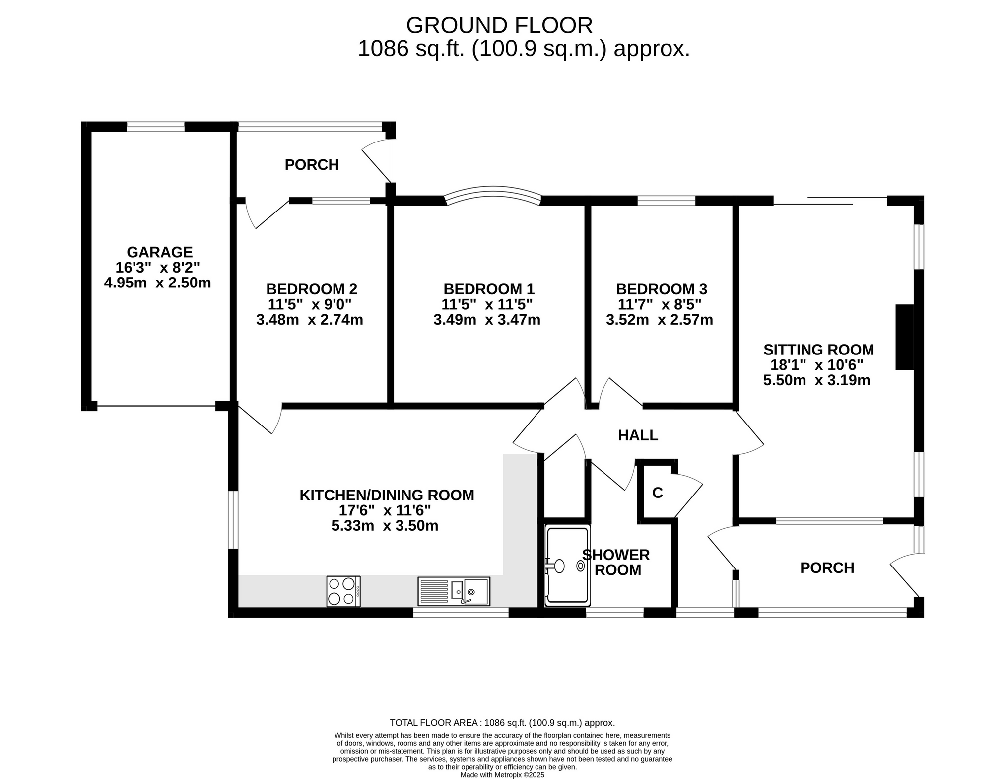 - Three bedrooms (one could be used as a dining room)
