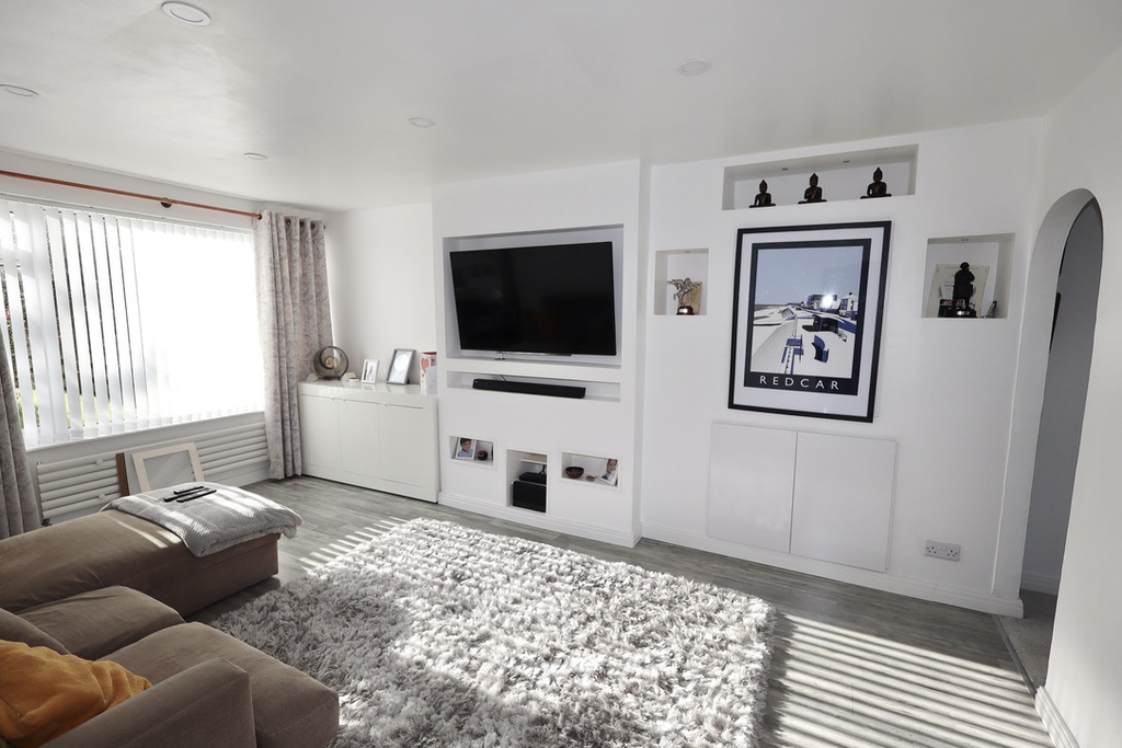 - Light and spacious sitting room with built in media unit and PIR lighting which leads into the dining room