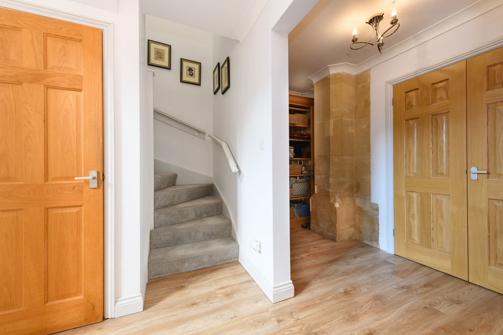- Study area with fitted bookcases and laundry cupboard (with space for washing machine and tumble dryer) and access to a ground flor cloakroom