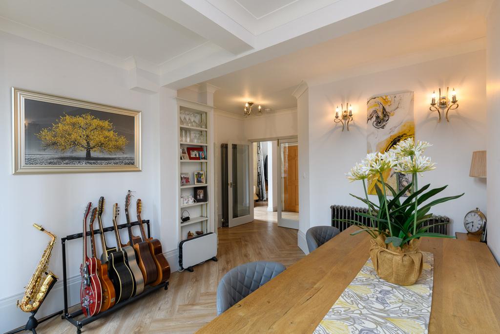 - Stunning triple aspect living room with dining area and original windows and partial vaulted ceiling