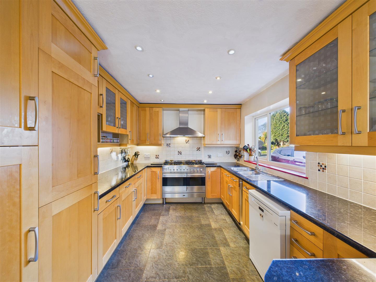 Kitchen - Having an extensive range of fitted units with worksurfaces, one and three quarter stainless steel sink and drainer with mixer tap, large Brittania range cooker with six ring gas hob and extractor hood above, plumbing for a dishwasher, integrated fridge/freezer, tiled surround, window to side elevation.