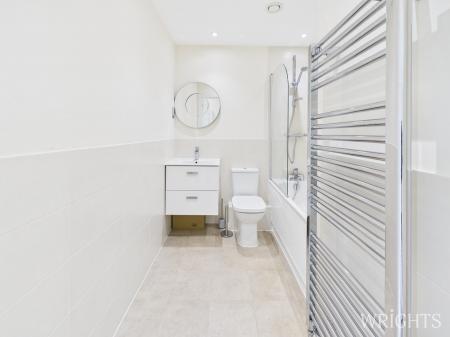 This is the most sophisticated bright and airy apartment offering stylish living. Enter Liberty House into the grand entrance with a winding staircase and lifts to all floors. Once on the landing, you can see the impressive atrium below, bathed in natural light. This plot is one of the larger of this style. Enter into the apartment and you are greeted with a long entrance hall with quality floor coverings. Storage cupboard housing the Heatrae Sadia Electromax combi boiler and the Vent-Axia ventilation system. The lounge and kitchen are an open plan design, making this a very sociable space, a large window offers natural daylight. The kitchen has fitted cabinets with integrated washer dryer, oven, hob and extractor hood. The quality floor covering continues into the kitchen and in the lounge there is fully fitted carpet.