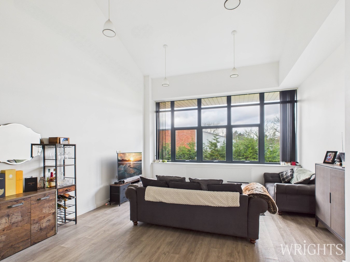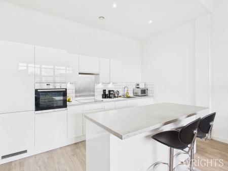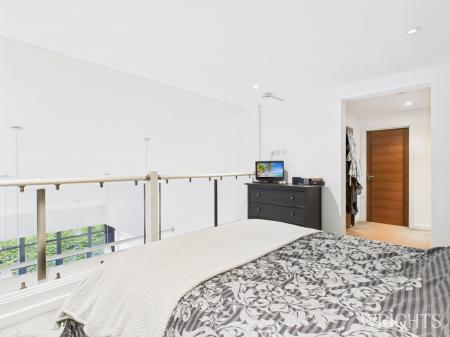 The apartment offers great space for living with a wonderful flowing open-plan layout across two floors, part of which creates a mezzanine over the living area. Impressive two storey high ceiling to the living areas with a large double height window to this room and bedroom two supplying the apartment with an abundance of light. Finished to the highest of standards features include stunning walnut style doors throughout, two stunning en suite bathrooms to both bedrooms, one with a dedicated dressing area. A fully integrated contemporary kitchen with breakfast island and the addition of fitted appliances to remain which include; fridge, oven. The dishwasher and washer dryer are also integrated. The apartment features electric radiator heating system operated via a Nest system. There are plenty of additional storage spaces for added convenience. A bonus cloakroom w/c to add to the delights.