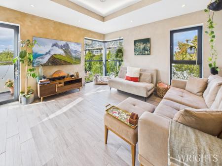 This exclusive entrance serves only three apartments, highlighting the private and luxurious nature of the development. Upon entering the well-maintained communal area, your flats front door is located on the top floor, accessed via its own landing. As you step through the front door, you are welcomed by large floor-to-ceiling windows overlooking the front of the development, creating a stunning dual-aspect view and allowing an abundance of natural light to fill the hallway. The walls feature elegant lime wash paint, adding a touch of sophistication. The apartment also benefits from loft access, which can be used for additional storage if required and accessed via the hallway. Off the hallway is the spacious second bedroom, complete with double-glazed windows overlooking the front of the development. The room boasts higher than average ceilings and benefits from a Vent-Axia system that ensures the interior air is refreshed regularly, enhancing comfort and air quality throughout the flat.