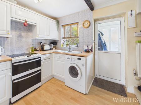 Upon entering, you'll find a convenient entrance hall, perfect for storing shoes and coats. The well-maintained kitchen comes equipped with appliances, providing an inviting space for culinary activities. The spacious living and dining room features a rear-facing aspect and is adorned with sliding doors that lead directly to a lovely paved and grassed gardenideal for relaxation and outdoor enjoyment. Additionally, this home boasts a large storage area under the stairs, maximizing your storage options.
