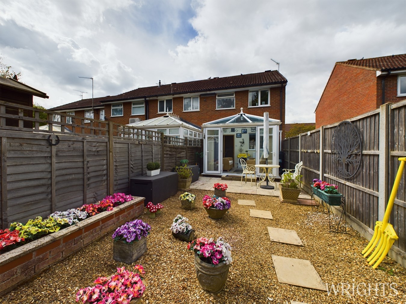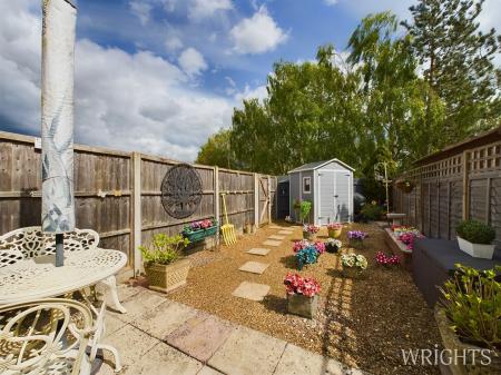 A sunny low maintenance garden, the rear is not overlooked and features a composite shed and pedestrian gated access to the private car parking area.