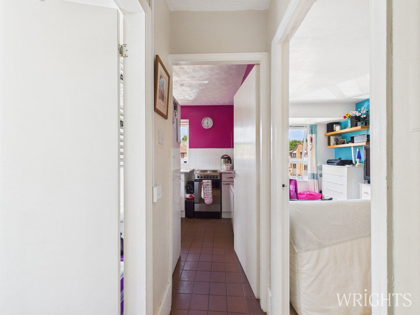 Kitchen has space for a fridge/ freezer, cooker. A flexible room with plenty of space for reconfiguration.