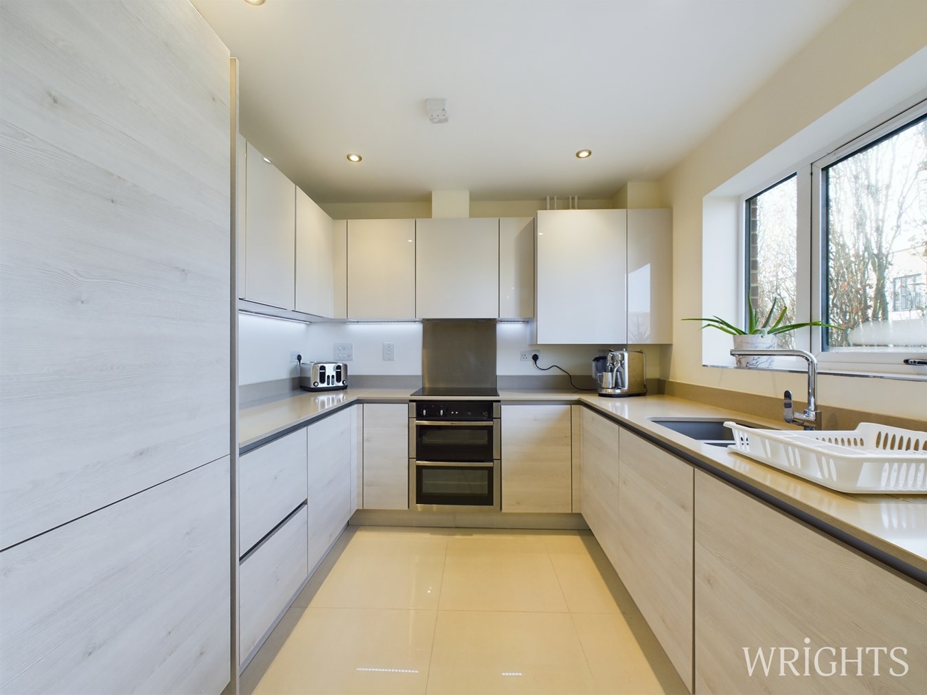 A warm and welcoming apartment with large windows flooding this apartment with lots of natural light. This is the most beautiful, tranquil, bright, light and airy home. High ceilings give these rooms an air of elegance and sophistication. A generous entrance hall with cosy high quality carpeted flooring and large storage cupboard. The main living space is the most charming area to socialise in, large enough to have a dedicated dining area. This room overlooks the Broadwater and gardens below. An open plan fully integrated kitchen with a vast range of fully handless "Nobila" units with quartz tops and up stands. integrated dishwasher, fridge/ freezer, washing machine and Neff cooker with inset hob. under counter led lighting completes this room.