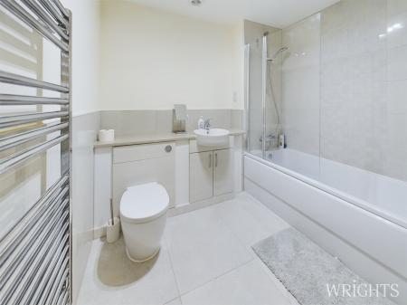 The main bedroom is a great size and offers built in wardrobes. A stylish en-suite shower room with contemporary tiles and fittings compliments the room. The second bedroom is a good size and will easily fit a double bed, this room has a large floor to ceiling style window. The bathroom is off the hallway with tiled floor and part tiled walls. Panel bath with shower attachment, low level w/c, sink with vanity unit, chrome fittings and a heated towel rail for comfort. Outside there are communal landscaped gardens, lockable bike store and bin store. Private parking bay plus visitors parking.