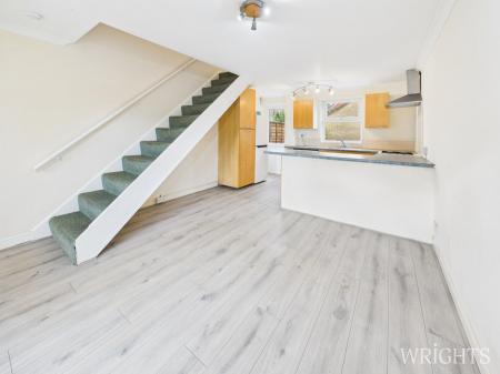 Situated in a quiet tree lined cul-de-sac is this end of terrace home, ideal for a first time buyer or investment property. The ground floor has an entrance porch which leads into an open plan lounge, diner, kitchen area with access to the rear garden. Windows at either end offer plenty of natural light throughout. Ascending the stairs there is a convenient airing cupboard and storage area, a three piece bathroom suite and a large double bedroom with recess area over the stairs for a wardrobe or dressing area.