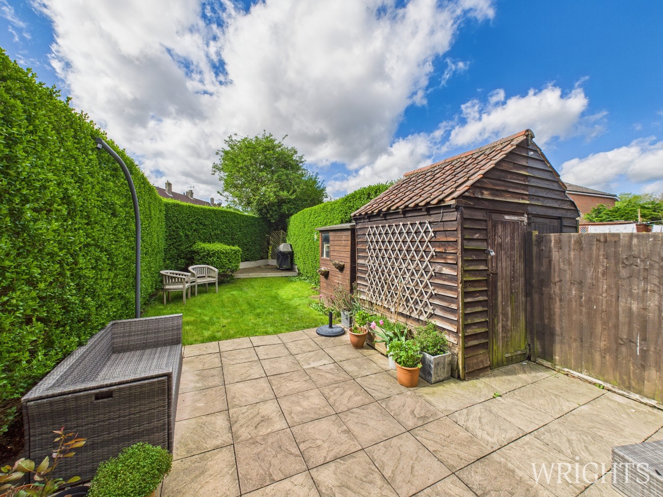 The homeowners take great pride in their garden, which is a true sun trap featuring lush greenery. The outdoor space includes a charming patio perfect for al fresco dining, along with a cosy decking area. The 50/50 Garden City shed, with clay roof tiles, complements the character of the property. There is also a timber shed. For added convenience, a side passageway provides easy access to the front. The driveway accommodates off-street parking for one vehicle, while the street offers unrestricted parking options.