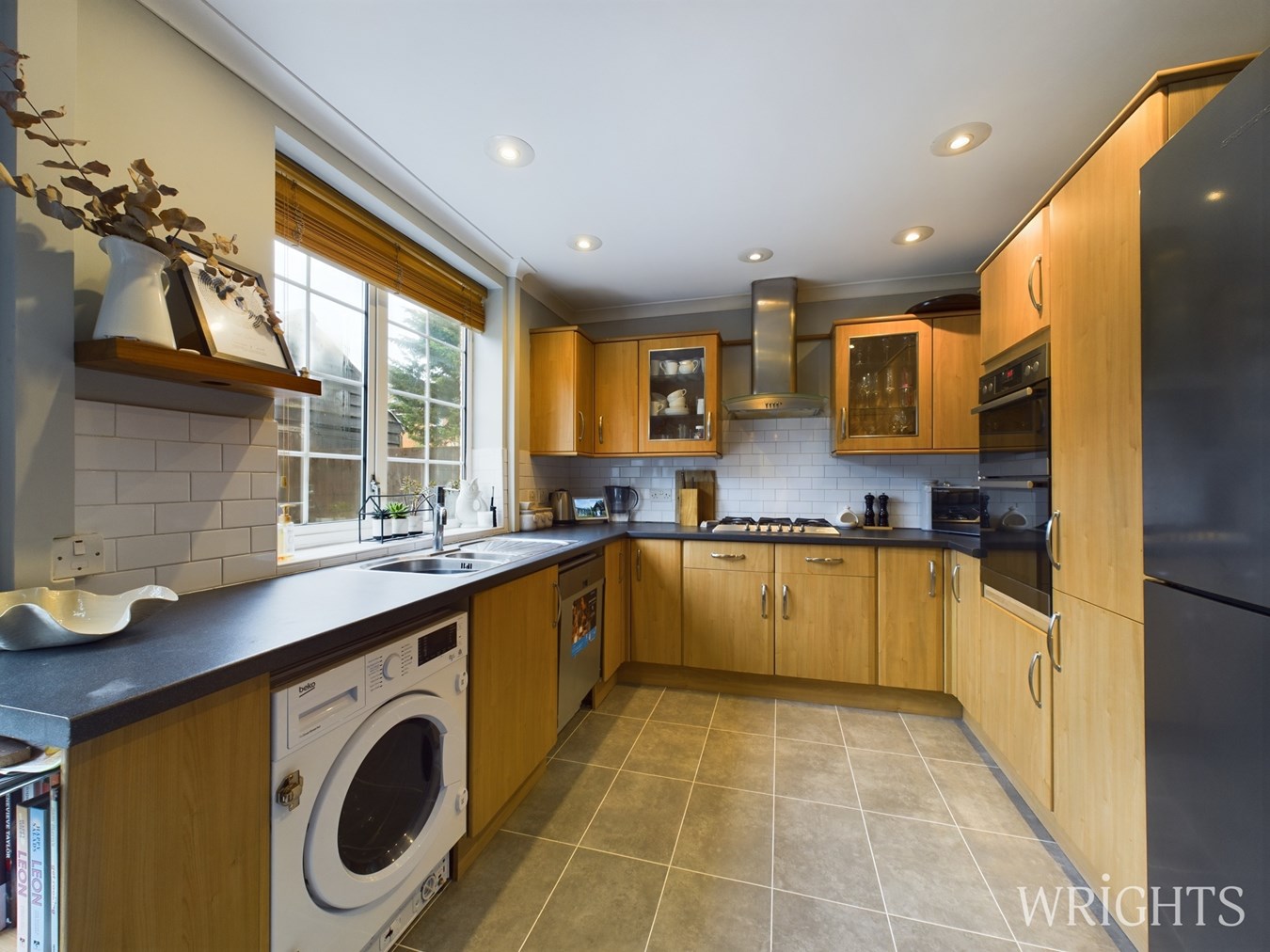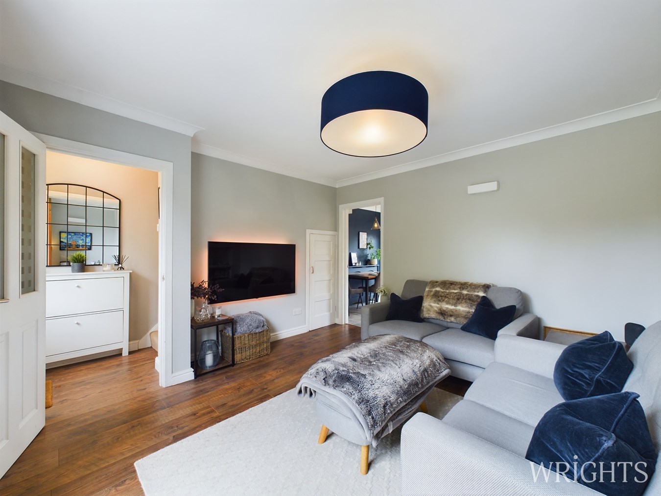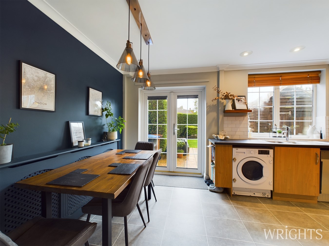 As you approach this delightful home nestled on a, tree-lined street, you'll be welcomed by a private driveway that offers both convenience and charm. Upon entering, you'll find an inviting lobby that seamlessly transitions into the main living area, a cosy yet spacious room that elegantly defines a perfect space for relaxation and entertaining. Enjoy the beauty of dual-aspect views, where a window at the front invites the morning light, and elegant glass patio doors at the rear open up to your outdoor sanctuary, ensuring all-day sunshine from the south facing rear aspect off of the dining area. The kitchen offers plenty of storage solutions and bonus features such as an eye-level double oven, induction hob, dishwasher and washing machine. Additionally, a spacious under-stairs storage cupboard offers practical solutions for organizing everyday items, ensuring your home remains clutter free.