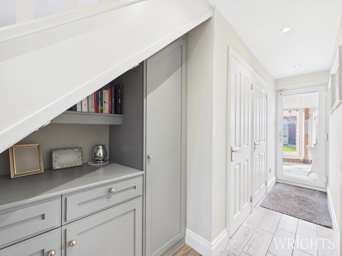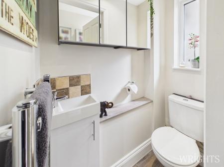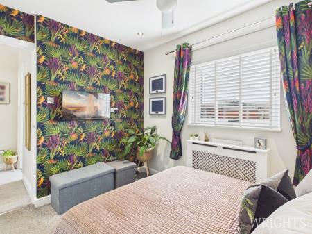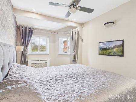 This impressive turn-key family home is one not to miss. From the well maintained front garden, the tone is set for what is to come. The extended front porch offers convenient storage, and this only continues as you continue through the property, with bespoke storage units throughout the hallway. The under-floor heating is something that you can't go without once you experience it. The lounge has fitted blinds and a media wall to keep space to a premium, with the added luxury of a ceiling fan for those warmer days and nights. A real stand out is the modern fitted kitchen with quartz work surfaces and NEFF appliances. The downstairs also has a w/c, alleviating the need for everyone to go upstairs. The first floor offers a single bedroom that has maximised the space in the room by utilizing the box over the stairs, a double bedroom and master bedroom, again with a TV embedded in the wall - All of which have fans in. The tiled family bathroom has a shower over the bath, basin and w/c.