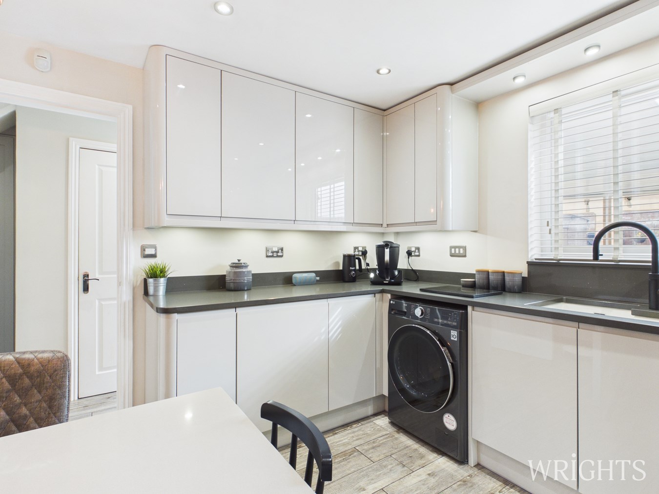 A real credit to it's current owners and beautifully presented throughout, this stunning three-bedroom terraced home has been thoughtfully upgraded and offers stylish, well-designed living space ideal for modern family life. Upon entering the property, you are welcomed by an extended front porch area, providing a practical space for coats and shoes. The entrance hallway benefits from bespoke under-stairs storage and additional cupboards, along with a convenient downstairs W/C. The living room is tastefully decorated and features fitted blinds, a ceiling fan and an attractive media wall, creating a comfortable and contemporary space for relaxing or entertaining. A real highlight of the home is the modern fitted kitchen, finished to a high standard with genuine quartz worktops, integrated NEFF appliances, combining both style and functionality. There is also the added bonus of under floor heating in the kitchen, hallway, porch and cloakroom. Ascending to the first floor, there is a stylishly tiled family bathroom comprising a shower over the bath, wash basin, heated towel rail and W/C. The landing also provides access to a useful storage cupboard. The single bedroom has been cleverly designed with a bed built into the box over the stairs, maximising space, and includes a ceiling fan. The second bedroom is a well-proportioned double with a ceiling fan. The principal bedroom also benefits from a convenient ceiling fan and a television seamlessly built into the wall. The loft has been insulated, boarded and power added for convenient additional storage space.