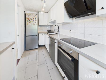 A quiet cul-de-sac located just a mile from the town centre and mainline trains, this well presented, two bedroom first floor apartment is ideal for first time buyers, commuters or investors. A welcoming hallway, leads to an impressive light and airy dual aspect lounge diner, a modern kitchen with ample workspace, impressive bathroom, fully tiled with a walk-in shower, double bedroom with built in storage and a single bedroom which could be used as an office space. There is also the added bonus of a loft, offering additional storage.
