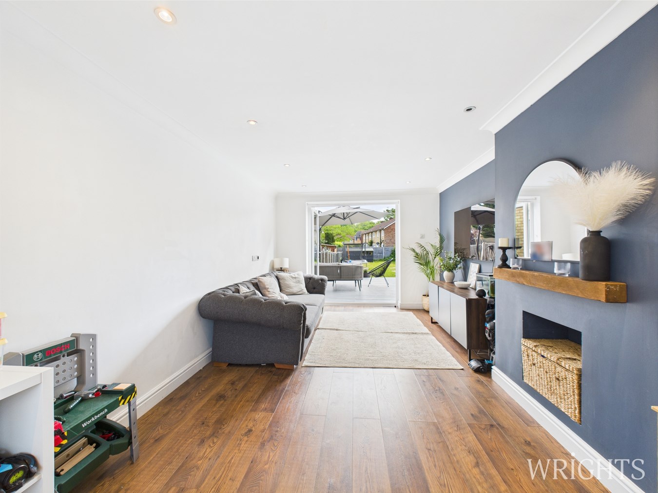 The beautifully large landscaped garden offers a decked patio area opening out from the kitchen and bifold doors from the living room to the immediate rear, well stocked mature borders and lawn. Lovely area for the family to enjoy family barbeques in the sun.